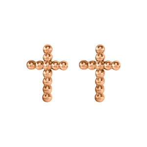 9mm Beaded Cross Post Earrings in 14k Rose Gold