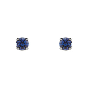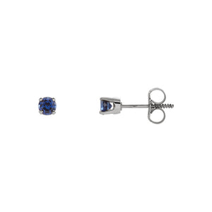 Sweet and sentimental, ideal for the September birthday girl who enjoys a classic petite style designed just for her. A lab-created blue sapphire cradled in a 4-prong closed back setting of 14k white gold finished with a threaded post and push-on screw-off back for a secure fit. Total synthetic gemstone weight for the pair is 0.30 of a carat.