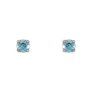 Sweet and sentimental, ideal for the March birthday girl who enjoys a classic petite style designed just for her. A genuine aquamarine cradled in a 4-prong closed back setting of 14k white gold finished with a threaded post and push-on screw-off back for a secure fit. Gemstone treatment - traditional heated enhancement. Total gemstone weight for the pair is 1/5 of a carat.