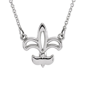 Polished Fleur De Lis Necklace in 14k White Gold, 16 Inch