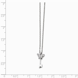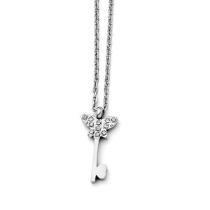 CZ Butterfly Key Adjustable Necklace in Stainless Steel, 16-18 Inch