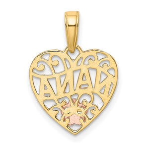14k Two Tone Gold Nana Filigree Heart Pendant, 15mm