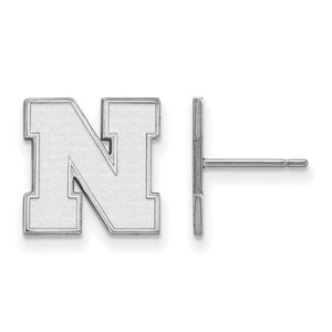 10k White Gold University of Nebraska Small Post Earrings - Black Bow Jewelry Company