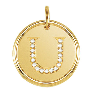 .085 Ctw G-H, I1 Diamond Initial 17mm 14k Yellow Gold Pendant Letter U