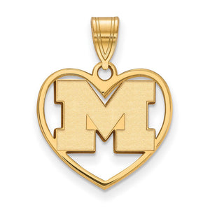 14k Gold Plated Silver U. of Michigan Initial M Heart Pendant - Black Bow Jewelry Company