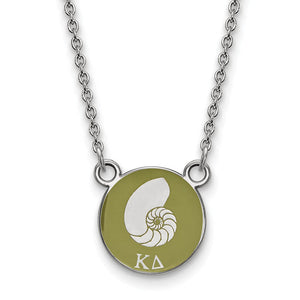 Sterling Silver Kappa Delta Small Olive Green Enamel Nautilus Necklace