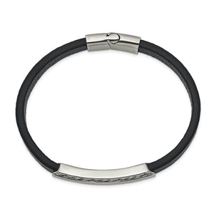 Stainless Steel & Navy Blue Leather Antiqued I.D. Bracelet, 8.25 Inch - Black Bow Jewelry Company