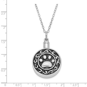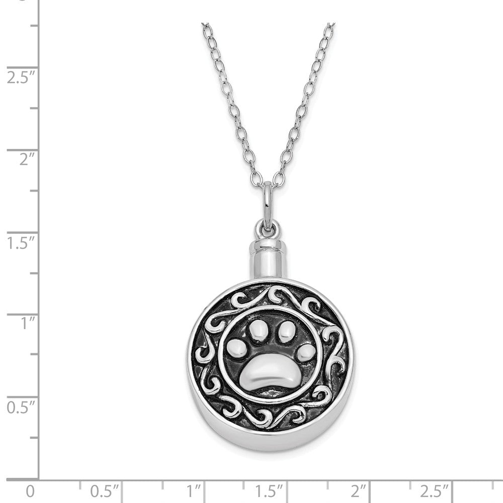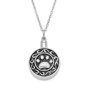 Rhodium Plated Sterling Silver Paw Print Ash Holder Necklace, 18 Inch
