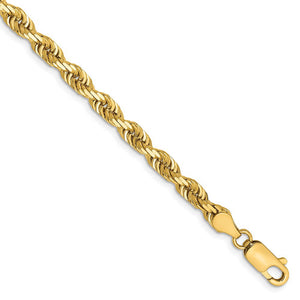 The radiant luster of 14k yellow gold combined with a diamond-cut finish gives this versatile, spiral rope chain plenty of sparkle. The flexible, solid design makes it perfect for those looking for a multi-talented accessory. This amazing quadruple rope measures 4.5mm in width and closes with a secure, lobster clasp. 7 inches in length.