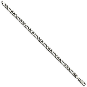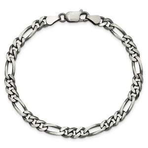 Round and oval links made of antiqued sterling silver interlock in a reoccurring three and one pattern that closes with a lobster claw clasp. The easy elegance of a classic Figaro chain looks great with dress or casual wear and the approximate 5.5mm width is perfect on its own or combined with other chains to create a layered look. Length, 8-inches.