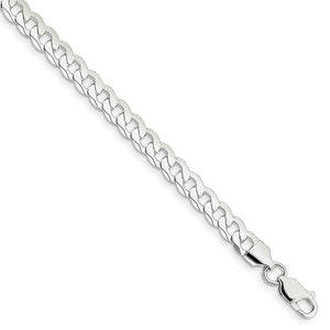 An array of sterling silver curb links join together to create the sleek style for this polished bracelet chain that closes with a lobster-claw clasp. It is approximately 6mm in width by 7-inches in length and features a solid link construction with beveled edges. Made in Italy.