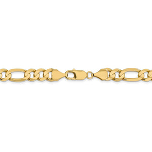 Solid concaved oval links made of polished 10k yellow gold interlock in a reoccurring three and one pattern that closes with a lobster claw clasp. The easy elegance of a Figaro chain looks great with dress or casual wear and the 8.75mm is perfect on its own or paired with other chains for a layered look. 9 inches in length