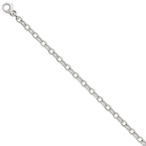 Men's 5mm 14k White Gold Ridged Oval Link Chain Bracelet - Black Bow Jewelry Company