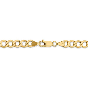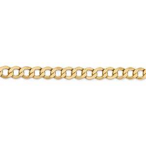 Clean, geometric lines and the lustrous glow of our 14k yellow gold curb chain make this an excellent choice for casual or evening wear. This one features lightweight hollow links that are 6.5mm in width by 8-inches in length and closes with a lobster-claw clasp.