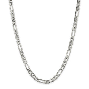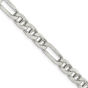 Mens 6.5mm Sterling Silver Solid Figaro Anchor Chain Bracelet - Black Bow Jewelry Company