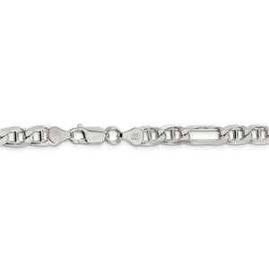 Mens 6.5mm Sterling Silver Solid Figaro Anchor Chain Bracelet