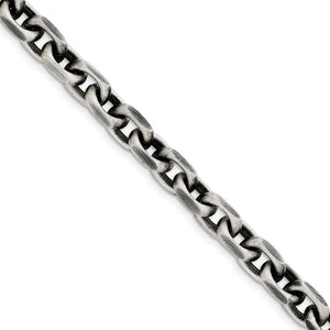 This antiqued cable chain with its simple style and oxidized finish is a great choice for those looking to make a unique fashion statement. The flat edge oval links on this rugged, sterling silver chain measure approximately 8.6mm by 13mm and close with a secure, lobster-claw clasp. 8.5 inches in length. Made in Italy.
