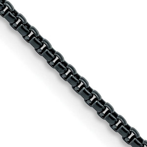 2.5mm Blue/Grey Plated Stainless Steel Rounded Box Chain Necklace - Black Bow Jewelry Company