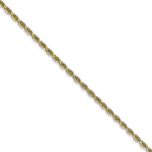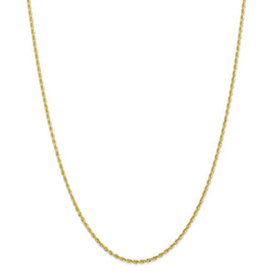 • The radiant luster of 10k yellow gold combined with a diamond-cut finish gives this versatile, spiral rope chain plenty of sparkle. The flexible, solid link design makes it perfect for those looking for a multi-talented accessory. This amazing quadruple link rope necklace is approximately 2mm in width by 20-inches in length and closes with a secure, lobster clasp.