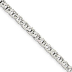 • A traditional mariner chain made of sterling silver features solid flat links that mimics the cable used to anchor boats. Flexible and strong, this 4.6mm width, 24-inch long chain closes securely with a lobster-claw clasp and makes a beautiful necklace for both men and women.