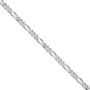 Round and oval links made of tarnish-resistant, rhodium-plated sterling silver interlock in a reoccurring three and one pattern that closes with a lobster claw clasp. The easy elegance of a classic Figaro chain looks great with dress or casual wear and the 7.75mm width is perfect on its own or combined with other chains to create a layered style. 26-inches in length.