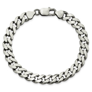 Ageless and classic, a curb or Cuban chain is one of the most durable single link styles. This antiqued necklace chain is created from sterling silver and features a solid link, flat curb design that is approximately 9mm in width by 18-inches in length and closes with lobster claw clasp.