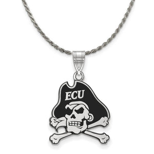 If you are a fan of East Carolina University and the Pirates then you need to show your school spirit with this East Carolina University pendant. We are a certified college jewelry retailer and this authentic item is officially licensed. It is crafted from Sterling Silver and crafted by LogoArt in the USA. Includes a flexible and strong diamond cut rope chain. This stunning chain is 2.25mm in width, 22 inches in length and features a sturdy lobster claw clasp. The chain is crafted in Italy.