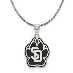 If you are a fan of The University of South Dakota and the Coyotes then you need to show your school spirit with this University of South Dakota pendant. We are a certified college jewelry retailer and this authentic item is officially licensed. It is crafted from Sterling Silver and crafted by LogoArt in the USA. Includes a flexible and strong diamond cut rope chain. This stunning chain is 2.25mm in width, 20 inches in length and features a sturdy lobster claw clasp. The chain is crafted in Italy.