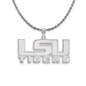 • If you are a fan of Louisiana State University and the Fightin Tigers then you need to show your school spirit with this Louisiana State University pendant. We are a certified college jewelry retailer and this authentic item is officially licensed. It is crafted from Sterling Silver and crafted by LogoArt in the USA. Includes a flexible and strong diamond cut rope chain. This stunning chain is 2.25mm in width, 22 inches in length and features a sturdy lobster claw clasp. The chain is crafted in Italy.