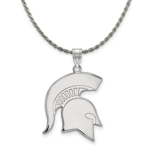 If you are a fan of Michigan State University and the Spartans then you need to show your school spirit with this Michigan State University pendant. We are a certified college jewelry retailer and this authentic item is officially licensed. It is crafted from Sterling Silver and crafted by LogoArt in the USA. Includes a flexible and strong diamond cut rope chain. This stunning chain is 2.25mm in width, 20 inches in length and features a sturdy lobster claw clasp. The chain is crafted in Italy.