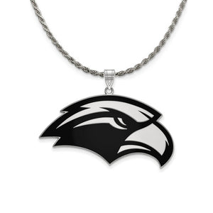 • If you are a fan of The University of Southern Mississippi and the Golden Eagles then you need to show your school spirit with this University of Southern Mississippi pendant. We are a certified college jewelry retailer and this authentic item is officially licensed. It is crafted from Sterling Silver and crafted by LogoArt in the USA. Includes a flexible and strong diamond cut rope chain. This stunning chain is 2.25mm in width, 20 inches in length and features a sturdy lobster claw clasp. The chain is crafted in Italy.