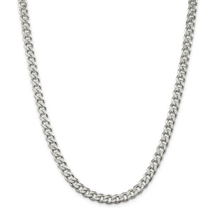 An array of sterling silver solid curb links join together to create the sleek style for this 7mm width, 26-inch long necklace chain that closes with a lobster-claw clasp. It features a solid link construction with a flat profile and a gleaming, polished finish.