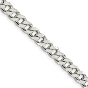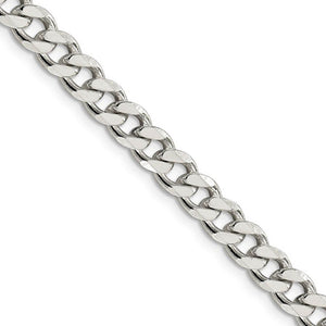 An array of sterling silver solid curb links join together to create the sleek style for this 7mm width, 22-inch long necklace chain that closes with a lobster-claw clasp. It features a solid link construction with a flat profile and a gleaming, polished finish.