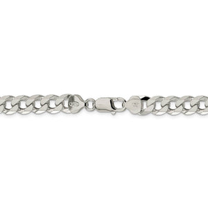 An array of sterling silver curb links join together to create the sleek style for this 8.5mm width chain that closes with a lobster-claw clasp. It features a solid link construction with beveled edges and a gleaming, polished finish. 26 inches in length. This item is backordered and we estimate it to ship in approx. 10-12 days. Please email service@theblackbow.com for more details.