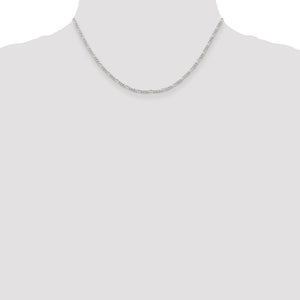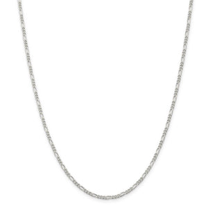 2.25mm Rhodium Plated Sterling Silver Solid Figaro Chain Necklace