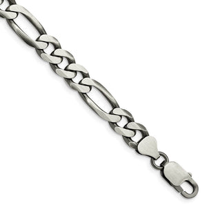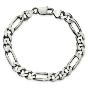 Round and oval links made of antiqued sterling silver interlock in a reoccurring three and one pattern that closes with a lobster claw clasp. The easy elegance of a classic Figaro chain looks great with dress or casual wear and the approximate 7.75mm width is perfect on its own or combined with other chains to create a layered look. Length, 26-inches.