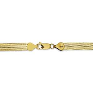 Express your bold attitude with a silky smooth chain that offers timeless appeal! This stunning 10k yellow gold chain necklace features a classic herringbone pattern that measures 5.5mm in width by 24-inches in length and fastens with a secure, lobster-claw clasp.