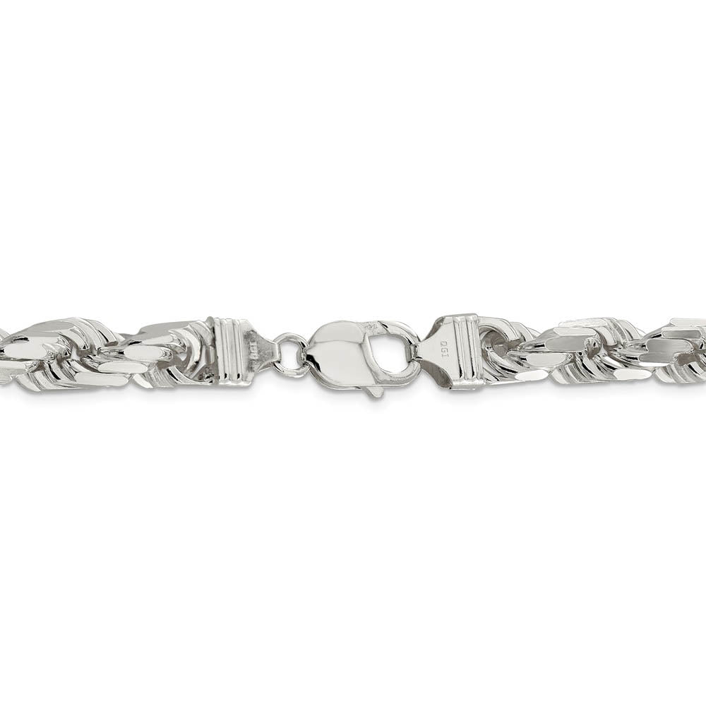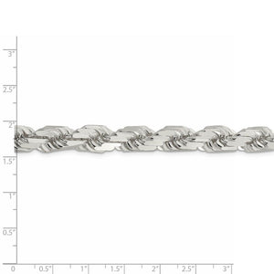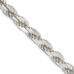 Rope chain necklaces made of twisted and braided sterling silver enhanced with diamond-cuts are extremely popular because they offer a classy design with maximum shine. Flexible and strong, this elegant chain measures 10.25mm in width by 28-inches in length and features a solid link construction with a reliable lobster claw clasp.