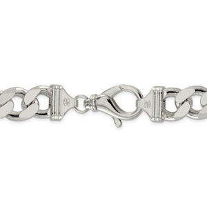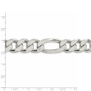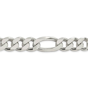 Generously sized, solid links of sterling silver create the sleek style of this masculine figaro chain that measures approximately 15mm in width by 9-inches in length. A user-friendly, lobster clasp keeps it securely fastened.
