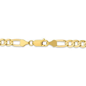 Known for its reoccurring three and one pattern, this stylish figaro chain with its solid link construction of 10k yellow gold features a bright, polished finish that adds lustrous appeal. It measure approximately 6mm wide by 7-inches long and fastens with a secure lobster-claw clasp.