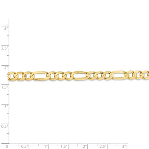 Known for its reoccurring three and one pattern, this stylish figaro chain with its solid link construction of 10k yellow gold features a bright, polished finish that adds lustrous appeal. It measure approximately 6mm wide by 9-inches long and fastens with a secure lobster-claw clasp.