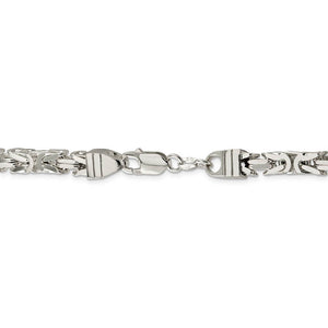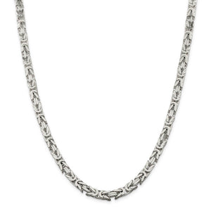 An intricate weave of polished sterling silver links form a wonderful ornate style chain that will give any outfit a sophisticated touch. This 6mm wide, 24-inch long, solid byzantine chain closes securely with a durable lobster-claw clasp. Made in Italy.