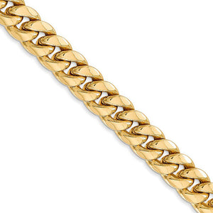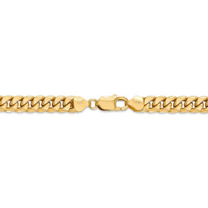 Ageless and classic, a wide Cuban curb chain is eye-catching and fashionable. The 14k yellow gold hollow links on this polished necklace chain are 7.3mm in width, 26-inches in length and close with a sturdy lobster clasp.