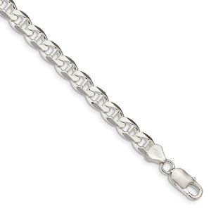 • A traditional mariner chain made of sterling silver features solid flat links that mimics the cable used to anchor boats. Flexible and strong, this 7.4mm width, 9-inch long chain closes securely with a lobster-claw clasp and makes a beautiful bracelet for men.