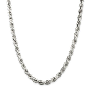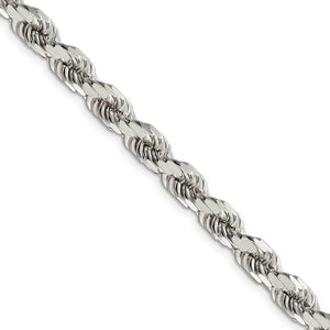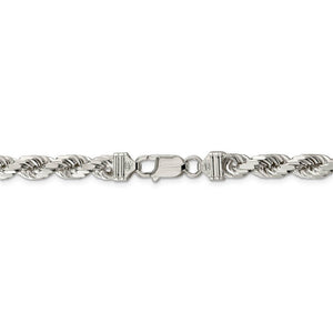 Men's 7mm Sterling Silver Diamond Cut Solid Rope Chain Bracelet