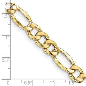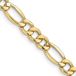 Figaro chains are similar to curb chains, in that they are flattened twisted links and has an attractive reoccurring three and one pattern design. The easy elegance of a classic Figaro chain looks great with dress or casual wear and the 8.5mm width is perfect on its own or combined with other chains to create a layered look. This hollow link, polished 22-inch necklace is created from 14k yellow gold and closes with a lobster claw clasp.