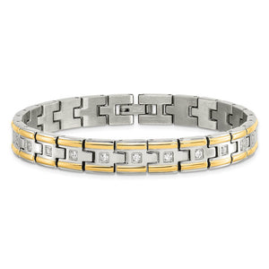 Men's 8mm Stainless Steel, Gold Tone Plated & CZ Link Bracelet, 8.5 In - Black Bow Jewelry Company