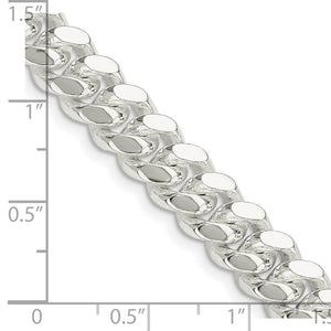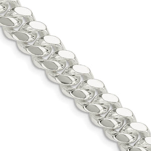 Ageless and classic, a wide Miami Cuban curb chain is eye-catching and fashionable. The sterling silver solid links on this polished bracelet chain are approximately 9mm in width by 9-inches in length and closes with a sturdy lobster clasp.