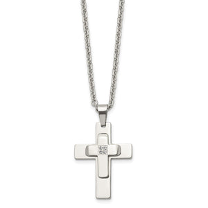 Men's Stainless Steel & CZ Polished Cross Necklace, 22 Inch