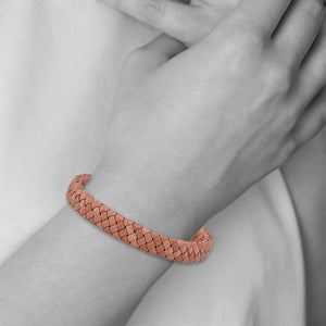 11.5mm Stainless Steel & Light Brown Leather Braided Bracelet, 8.25 In